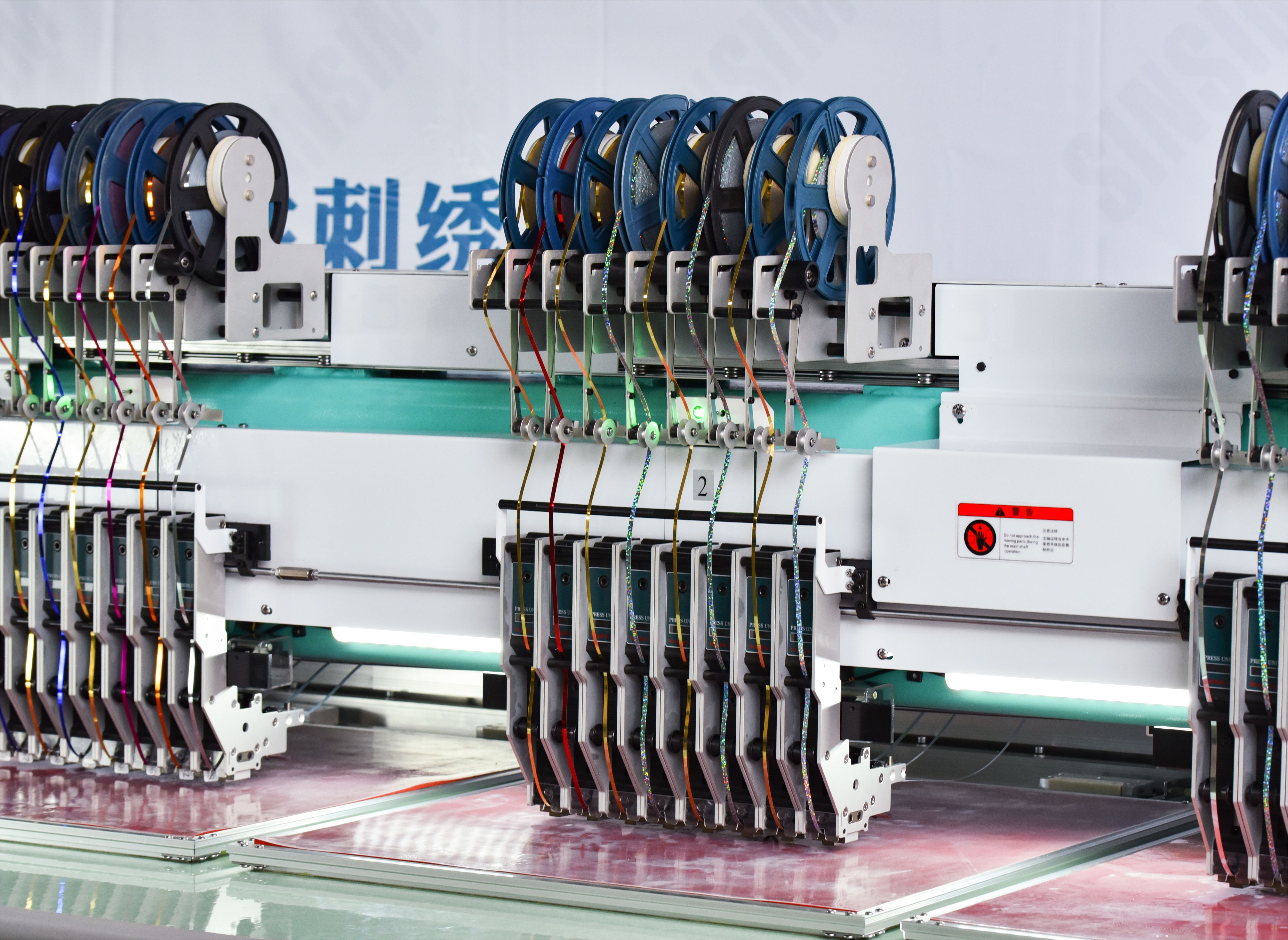 混合盤帶繡系列集合平繡、 纏繞繡、繩繡、 扁帶繡、珠片繡等功能, 廣泛應用于床上用品、童裝、女裝等行業,功能全面,性能全面。